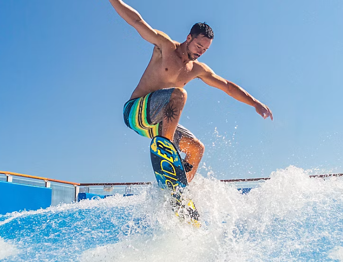The surf’s always up on the 40-foot-long FlowRider® surf simulator. Grab your board and get ready, 30,000 gallons of rushing awesome are headed your way. Carve like a pro — or just try to stay upright — while friends cheer you on from the stadium seating.